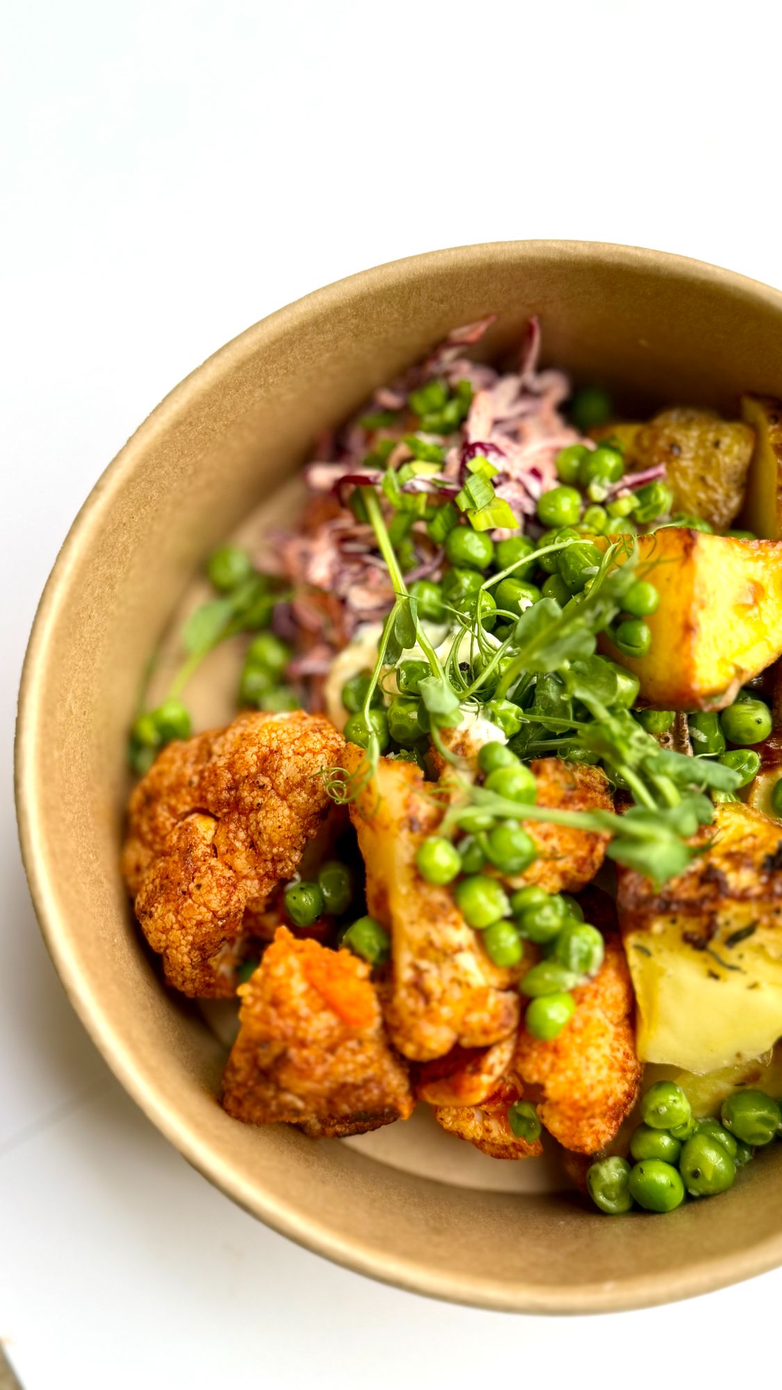 cauliflower fake "chicken” bowl